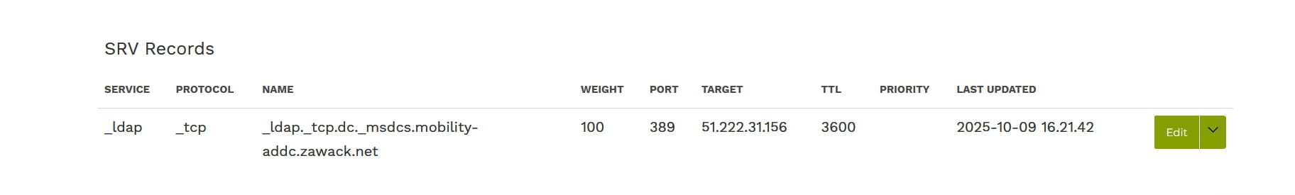 _ldap._tcp.dc._msdcs.mobility-addc est créé chez mon registraire.