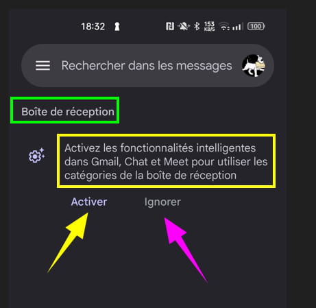 Logiquement, lorsqu'on fait la procédure pour la première fois pour supprimer L'IA de Gmail, sur un smartphone (idem sur PC) un message dans la ''boite de réception'' de Gmail ou sur son propre compte Google dans''boite de réception' , un message propose ''activer'' ou ''ignorer'' l'option.
