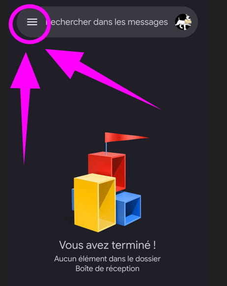 Une fois connecté à la messagerie, cliquer ou appuyer sur les 3 traits horizontaux :