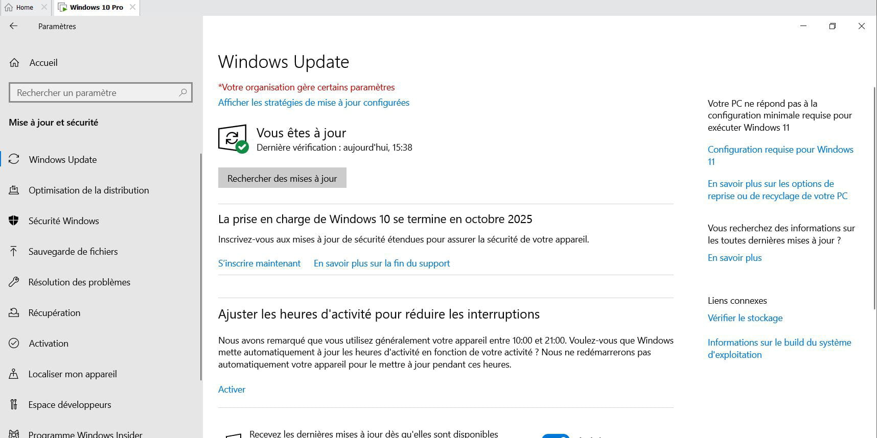 -Windows Update à jour, paramétré à Recevez les mises à jour dès que disponible