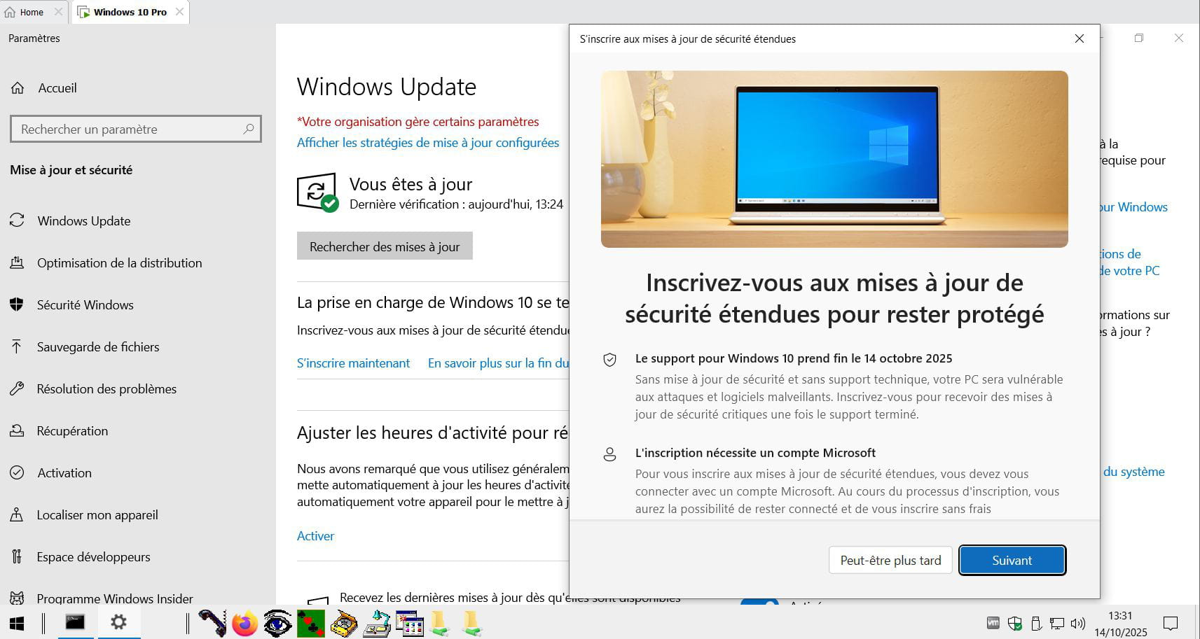 L’inscription aux mises à jour de sécurité étendues pour Windows 10 est temporairement indisponible dans votre région."