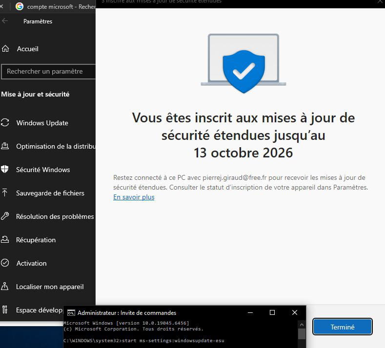 Bien que j'aie pu y accéder avant par le subterfuge indiqué, j'ai eu ce matin la dernière mise à jour (Windows Update me signale maintenant que Windows 10 a atteint la fin du support) et peut-être je n'aurais pas eu besoin du subterfuge en question si elle avait été faite.