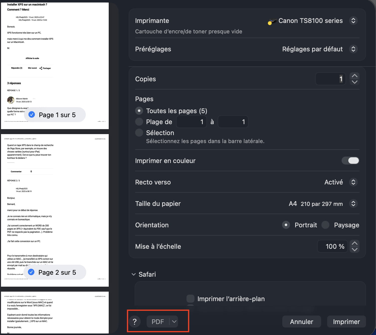 Problème actuel : le destinataire a apporté des modifications sur le Word (sous MAC) et quand il a voulu l'enregistrer sous "XPS (MAC)", ce fut impossible...