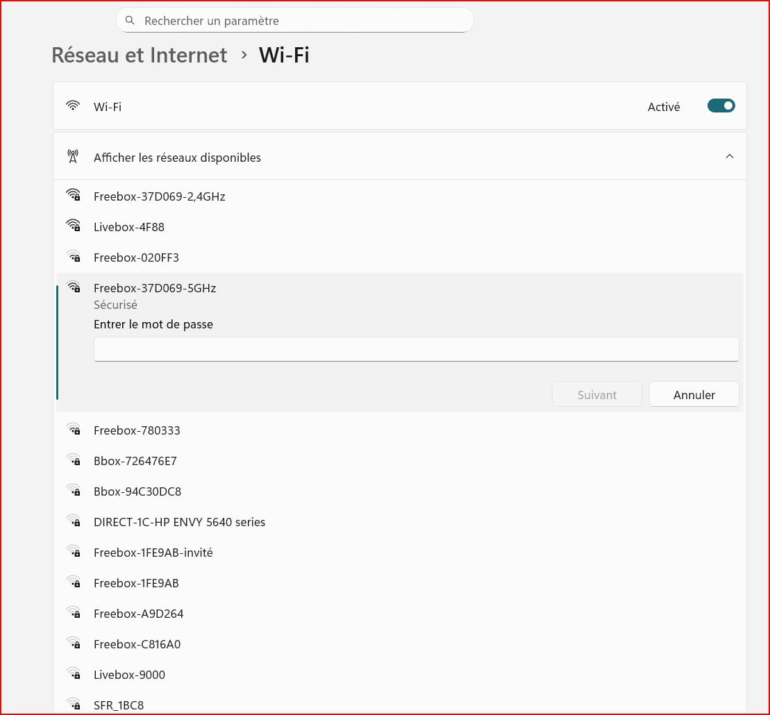 Et ce matin, bingo !!! connexion directe au réseau( 5GHz choisi)