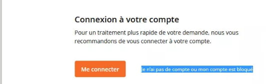 Et voir en cliquant sur "Je n’ai pas de compte ou mon compte est bloqué" (voir la partie en bleu sur la capture…) présente juste au-dessus.