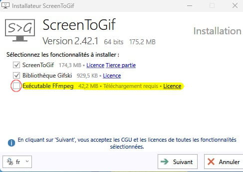 FFmpeg est un logiciel batch de traitement vidéo très puissant. S'il n'est pas automatiquement installé c'est qu'il doit être utilisé pour des fonctions particulières, mais que le logiciel doit pouvoir fonctionner sans. Si tu coches cette ligne, le logiciel sera téléchargé, il n'est pas inclus dans l'installateur.