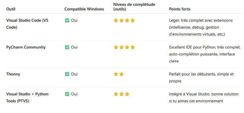 Ou bien, tu utilises Visual Studio Code ou PyCharm, qui sont aujourd’hui les deux meilleurs choix sous Windows pour le Python.