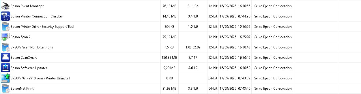 Je n'utilise pas d'imprimante Epson, lui préférant une autre marque mais, oui. Il ne faut pas désinstaller les composants. Tous sont essentiels à son fonctionnement.