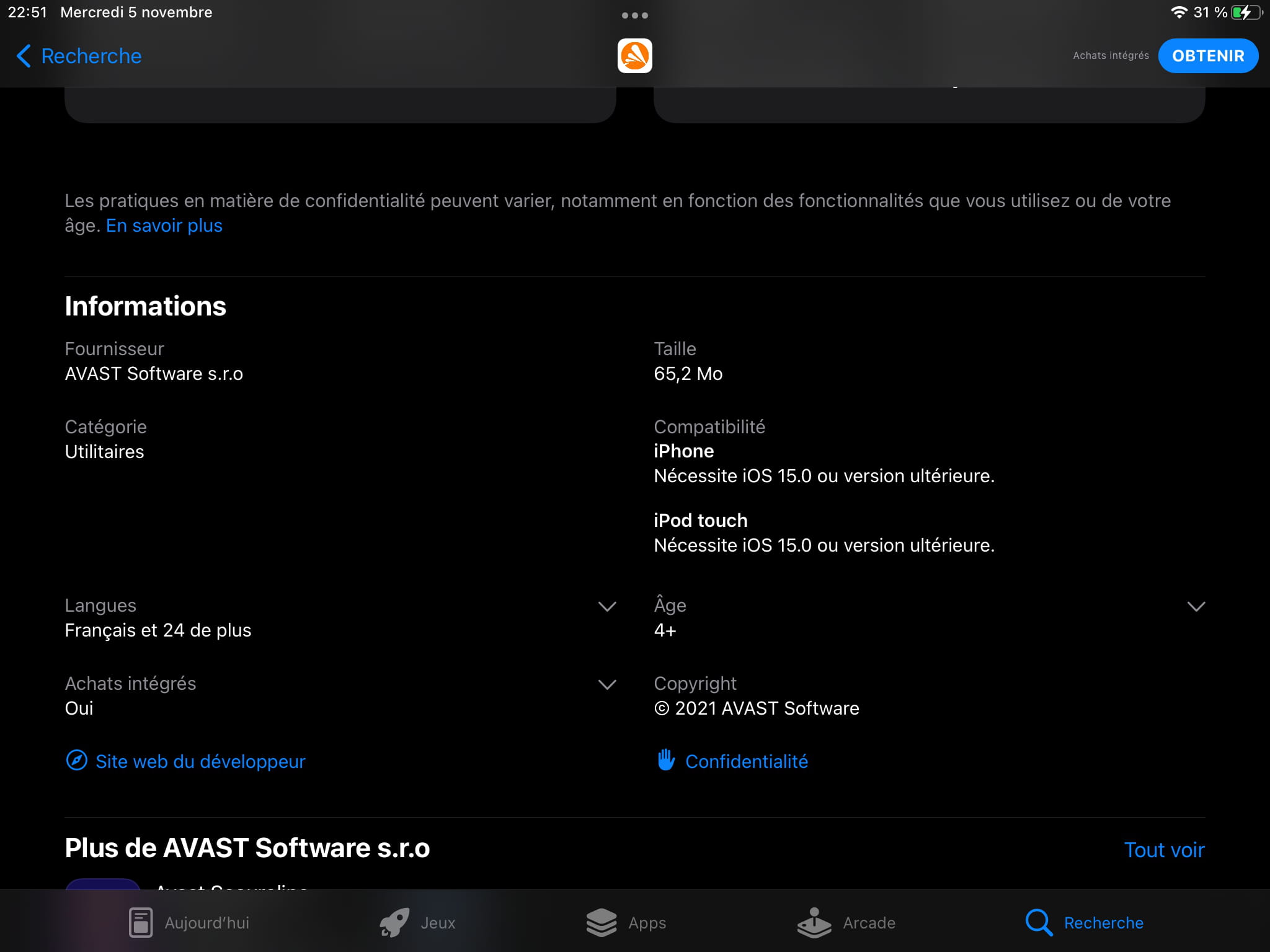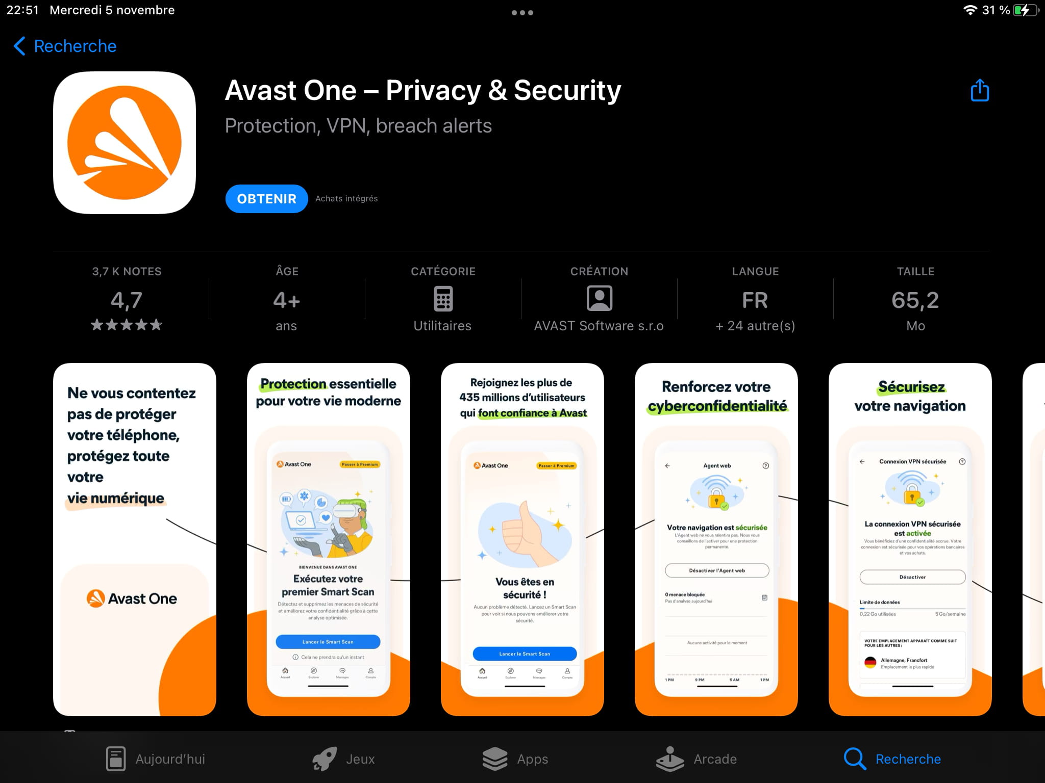 En plus de ce qui a été dit par Panth33ra que je salue, essayez via ce lien https://apps.apple.com/fr/app/avast-one-privacy-security/id1532183253