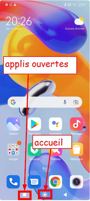 - Appuyez ensuite sur le bouton qui donne accès aux applis ouvertes (sans doute celui qui est le plus à gauche des 3 boutons). Vous devez voir l'appli qui donne accès à votre banque et qui est restée ouverte.