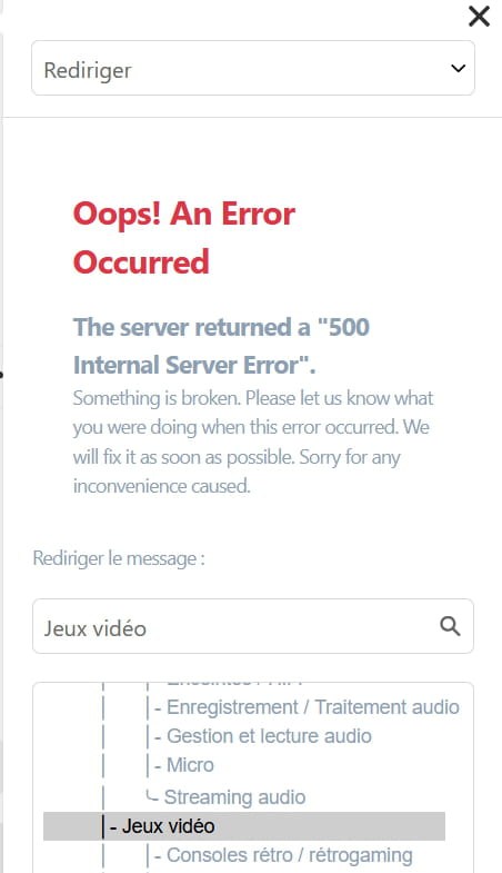 Le sujet a été redirigé sur le forum jeux-vidéo, sans obtenir cette erreur 500.