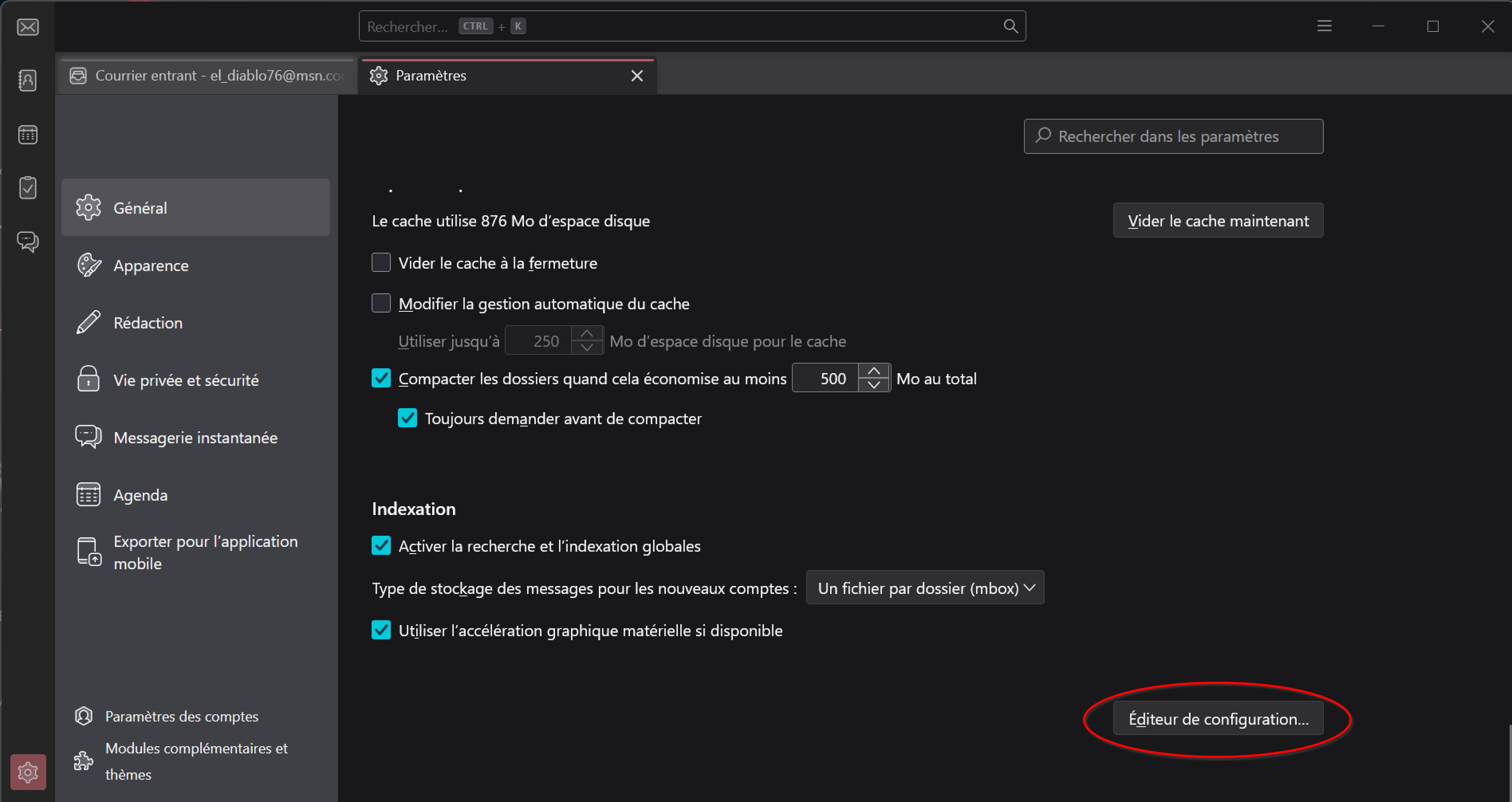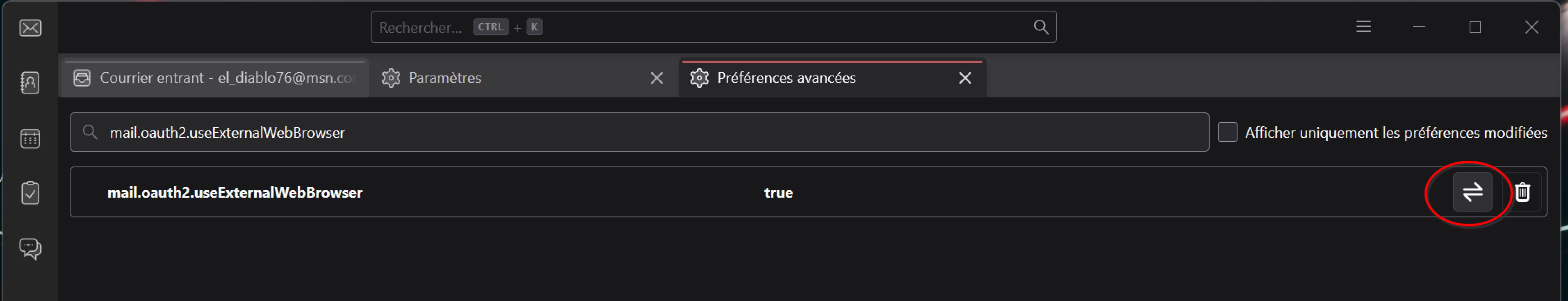 Il faut aller dans Paramêtres -> Général puis cliquer sur Editeur de configuration en bas de page, ensuite rechercher la clé "mail.oauth2.useExternalWebBrowser" et la passer à true :