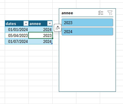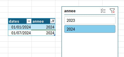 ( vous allez me dire qu'l est plus simple de clique directement sur la flèche du filtre et sélectionner l'année, mais bon c'est une demande qu'on m'a faite j'essaye d'y accéder ....)