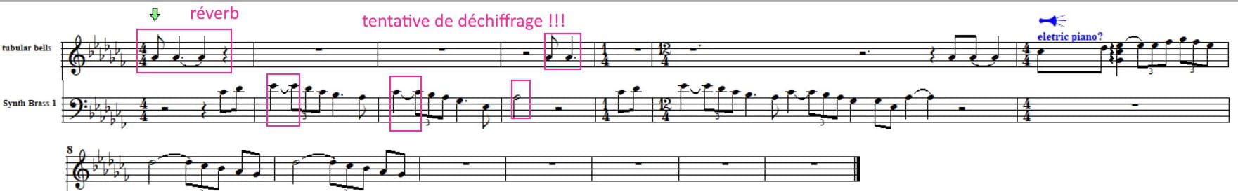 J'ai cherché la partition de Irlande (summit) en PDF ou en midi files sans succès. Tout ce que j'ai trouvé c'est le morceau en audio sur YouTube. Je l'ai enregistré aussi sur le logiciel Audacity et j'arrive à avoir le TTF (analyse des fréquences temporelles) (voir pièce jointe) Mais c'est en Ab mineur avec un rythme assez difficile que j'ai du mal à transcrire (voir 2ème PJ) J'ai tenté de retrouver les notes avec le TTF mais c'et un travail de fourmi aussi pouvez vous me suggérer une solution car je suis un musicien autodidacte et mes capacités de dictée musicale sont un peu limitées.