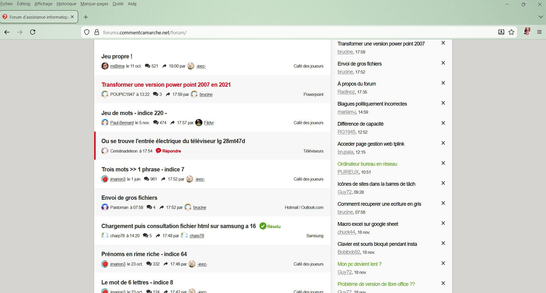 On est loin des époques héroïques où, sur CCM, les posts informels et copinesques du B-A BA de l'informatique grand public étaient fréquentés à ras bord, engendrant justement cet esprit potache entre camarades parce qu'on était contents d'avoir aidé ou d'avoir été aidés.