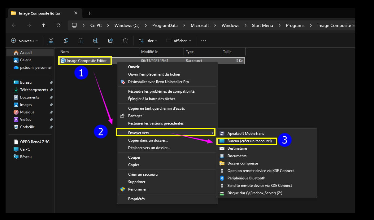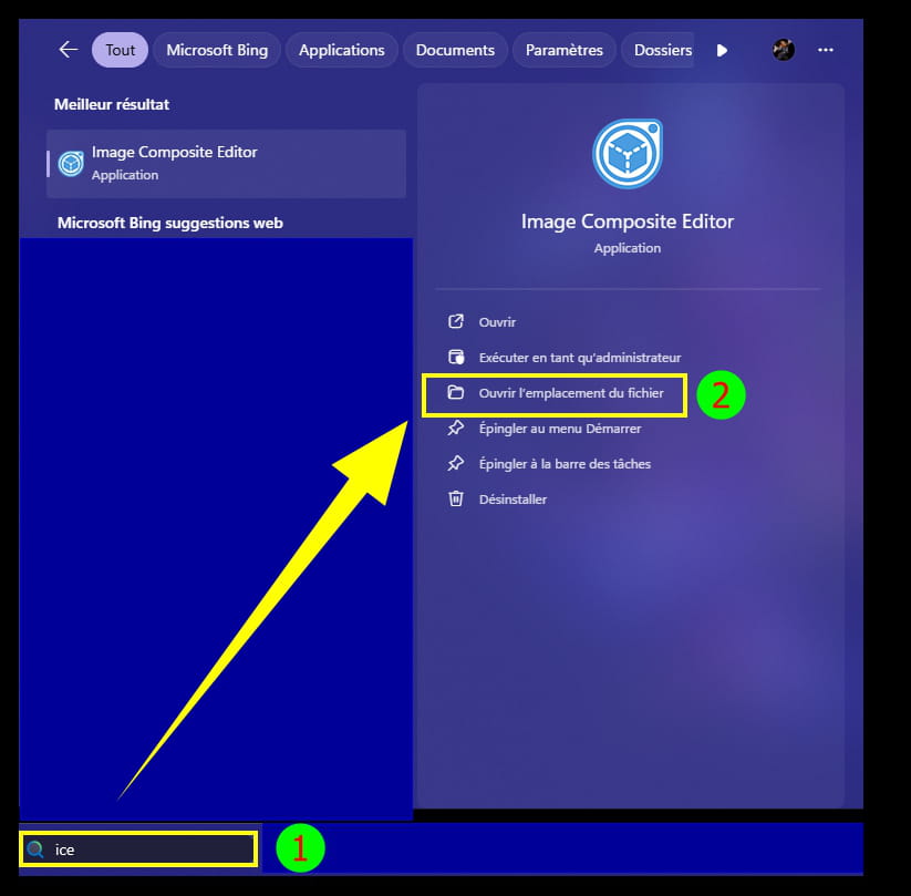 Créer un raccourci ''ICE'' ( Image Composite Editor ) sur le bureau W11 :