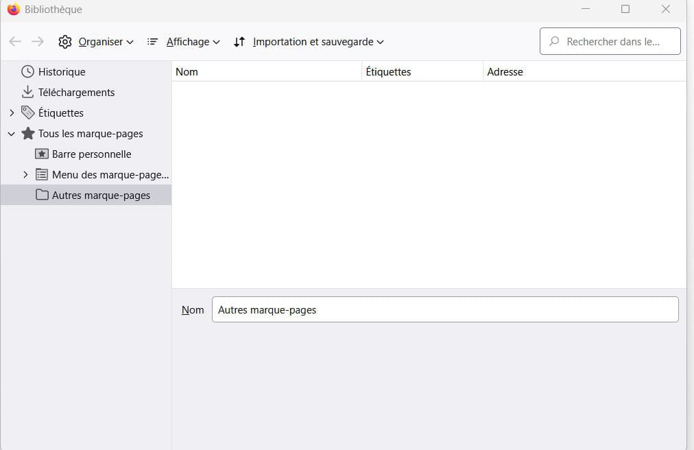 Marque pages Firefox absents