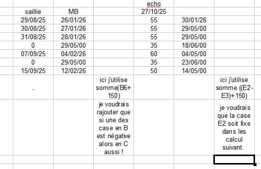 Si le nombre en B est négatif que veux tu faire : ajouter ou retrancher 150 ?