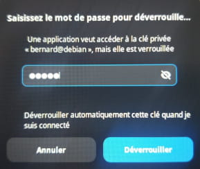 Si j'entre le mot de passe (paraphrase), je peux me connecter, me déconnecter et reconnecter sans avoir à entrer de nouveau le mot de passe. Si relance le PC, je dois de nouveau entrer la paraphrase.