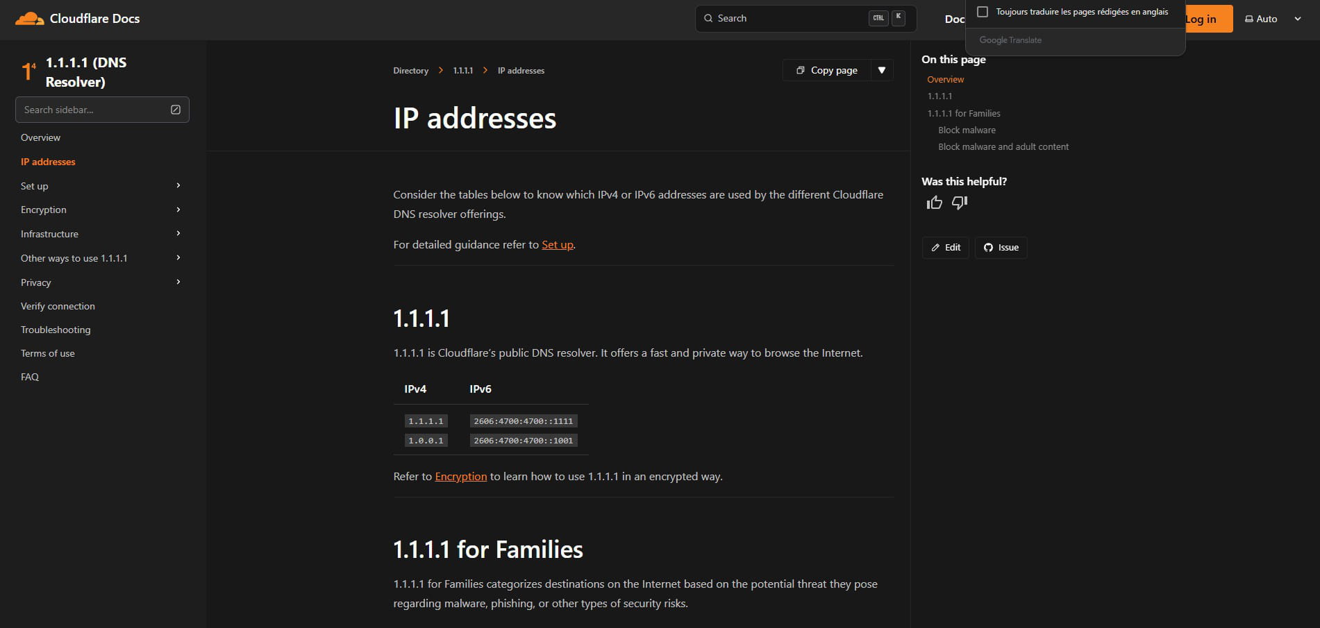 Sources :https://developers.cloudflare.com/1.1.1.1/ip-addresses/
