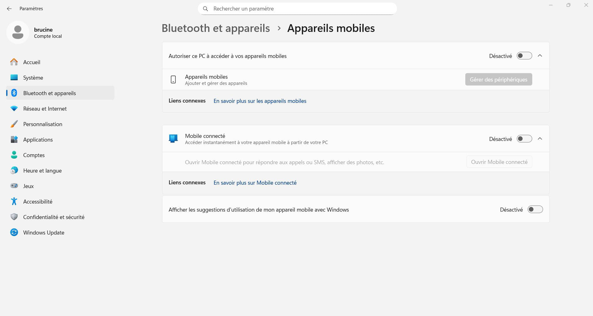 Problème avec "Lien avec Windows"/"Mobile connecté"