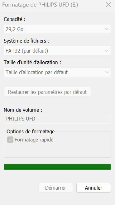 Testé deux clés USB (2 Go et 29 Go), toutes deux formatées en FAT32.