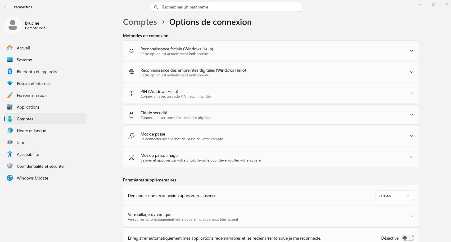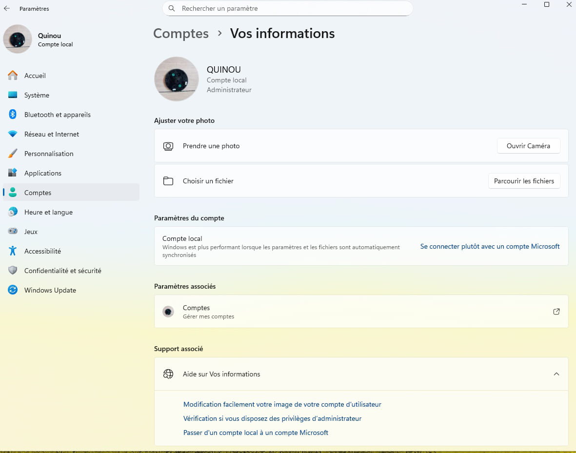 ci dessous copie comme toi, y'a pas inscrit compte local j'y comprend rien vos trucs. Je suis le seul utilisateur de ce PC.