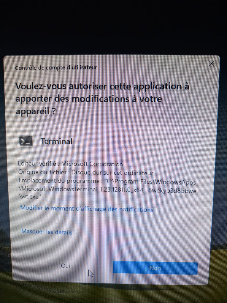 PS: poste 1 capture d'écran de la page qui s'ouvre quand tu auras cliqué sur OUI