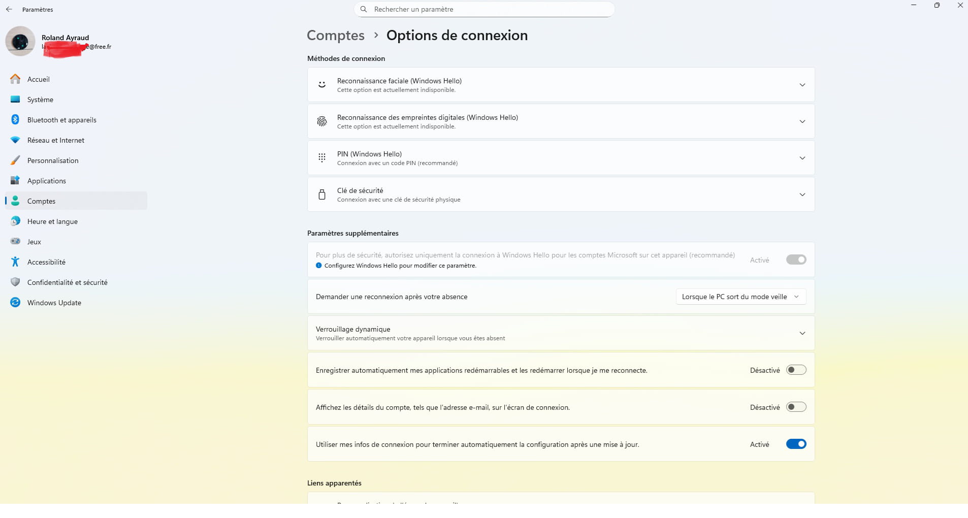 Nouveau PC avec windows 11, il me gonfle avec une 1ere fois quand je l'allume avec identité puis une 2eme fois puis après mot de passe de microsoft