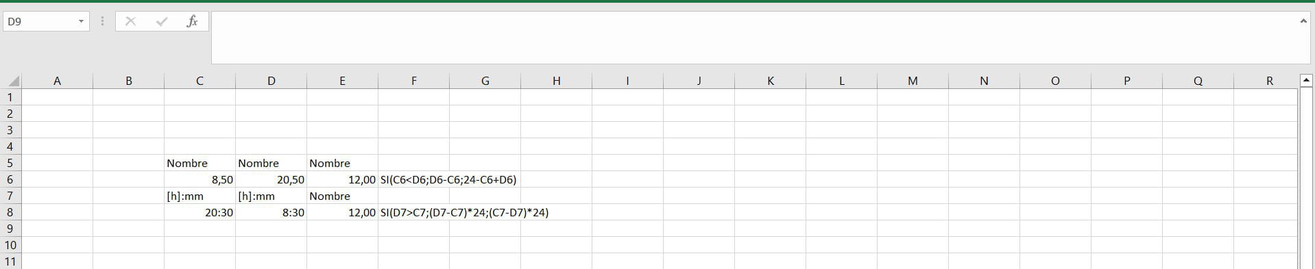 Comme ça lorsque C6 est inférieur à D6 ça marquera -1 h et en cas d'égalité et de supériorité ça marquera un nombre positif 0 et supérieur