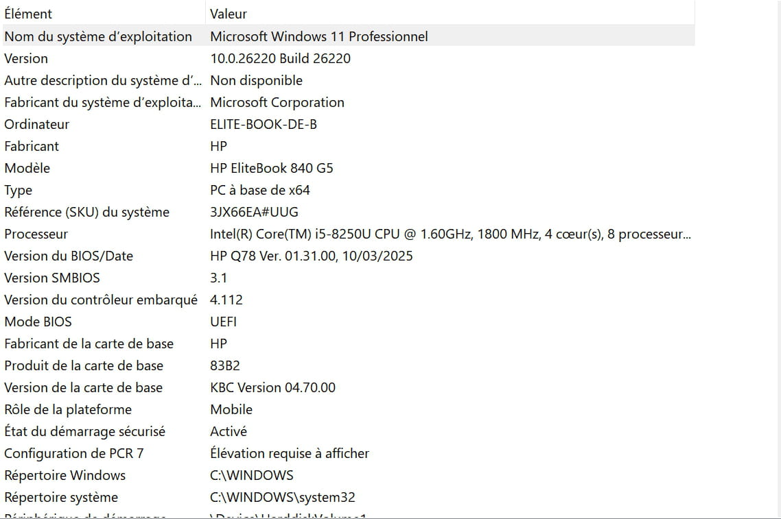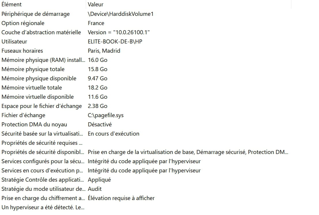 dans recherche (en bas à gauche), tape ==> msinfo32 et clique sur ==> ouvrir