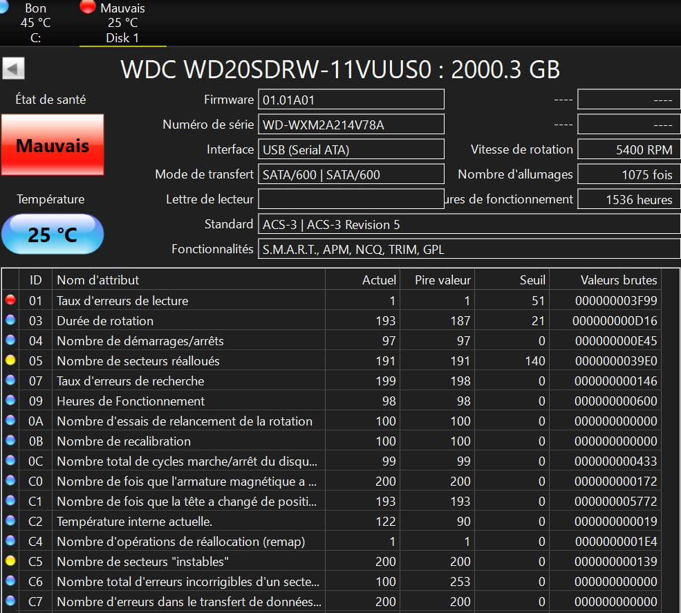 Un de mes dd n apparaît plus dans mon pc depuis quelques semaines alors qu'il fonctionnait parfaitement cet été.