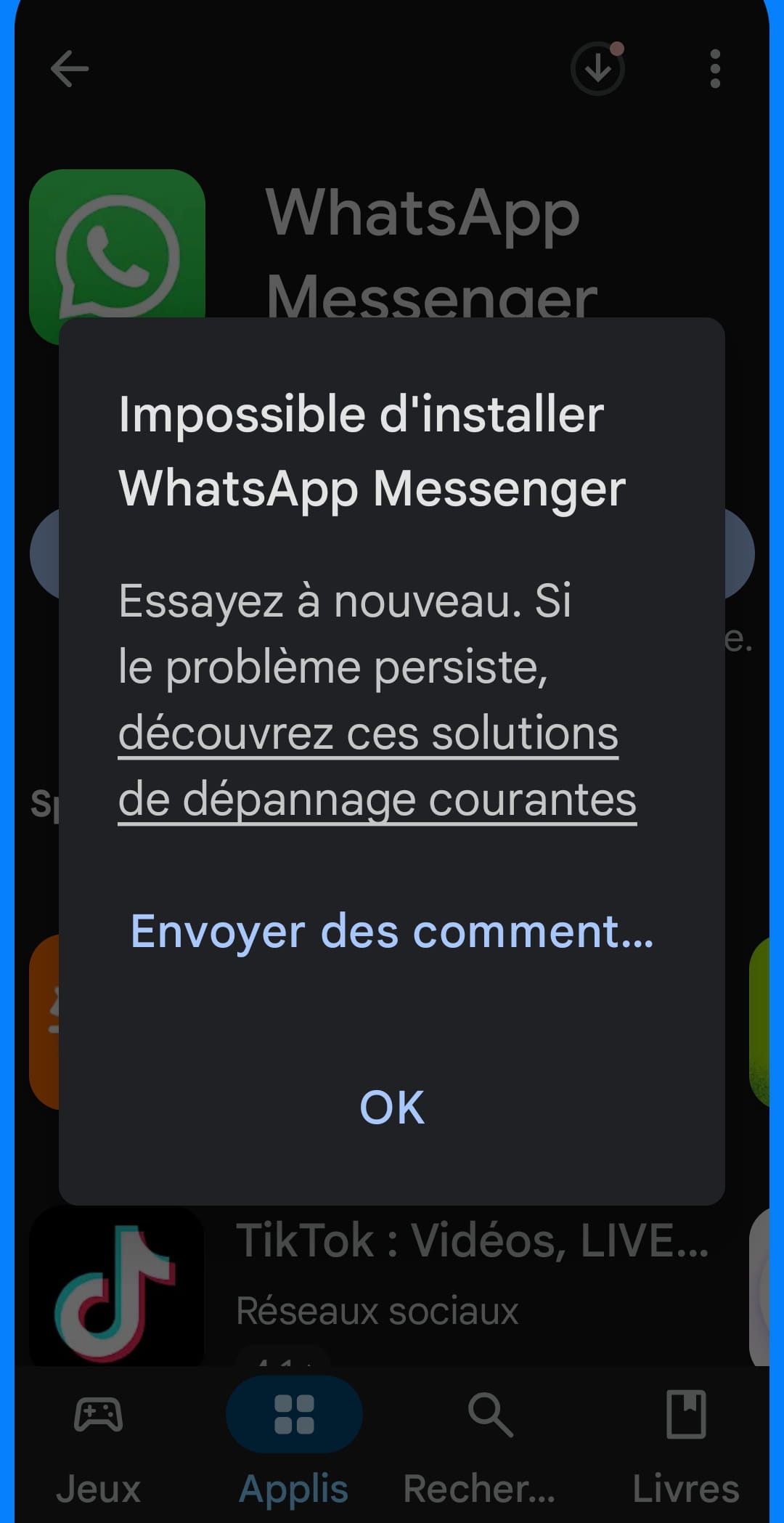 J ai un samsung S23. Mon.application whatsnapp n apparait plus dans les applications. Elle n est pas dans les applications caches. Mon play store m indique ne pas pouvoir telecharger whatsapp . Jai fait assez de place de stockage, je suis a 73% j ai eteint rallume mon tel. Pas rien a faire. Si vous avec une dolution je suis preneuse. D avance merci