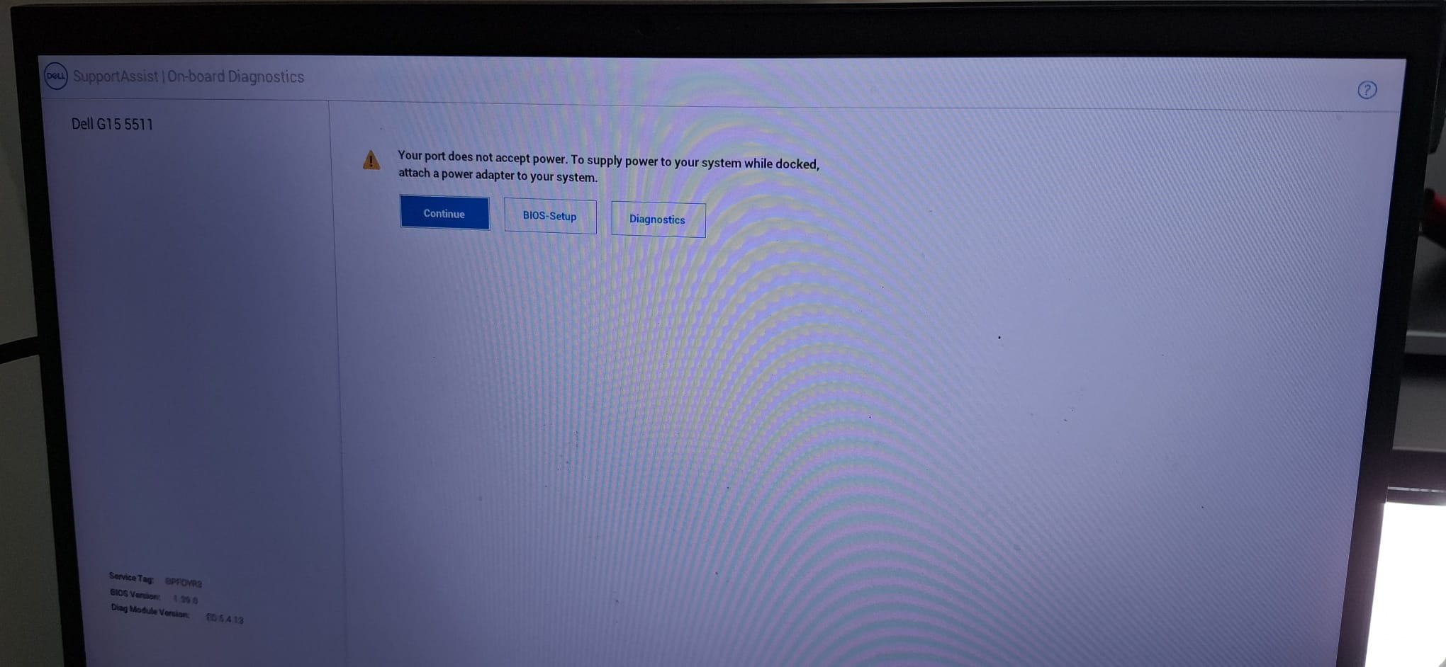 J'ai récemment fait l'achat d'une station d'accueil Station d'accueil Dell WD19S 130W pour brancher 2 écrans à un PC portable (Dell G15). Malheureusement, j'obtient ce message d'erreur ci-dessous au démarrage.