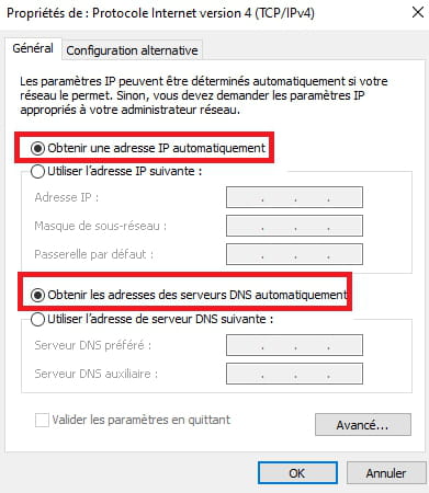--> Obtenir les adresses des serveurs DNS automatiquement