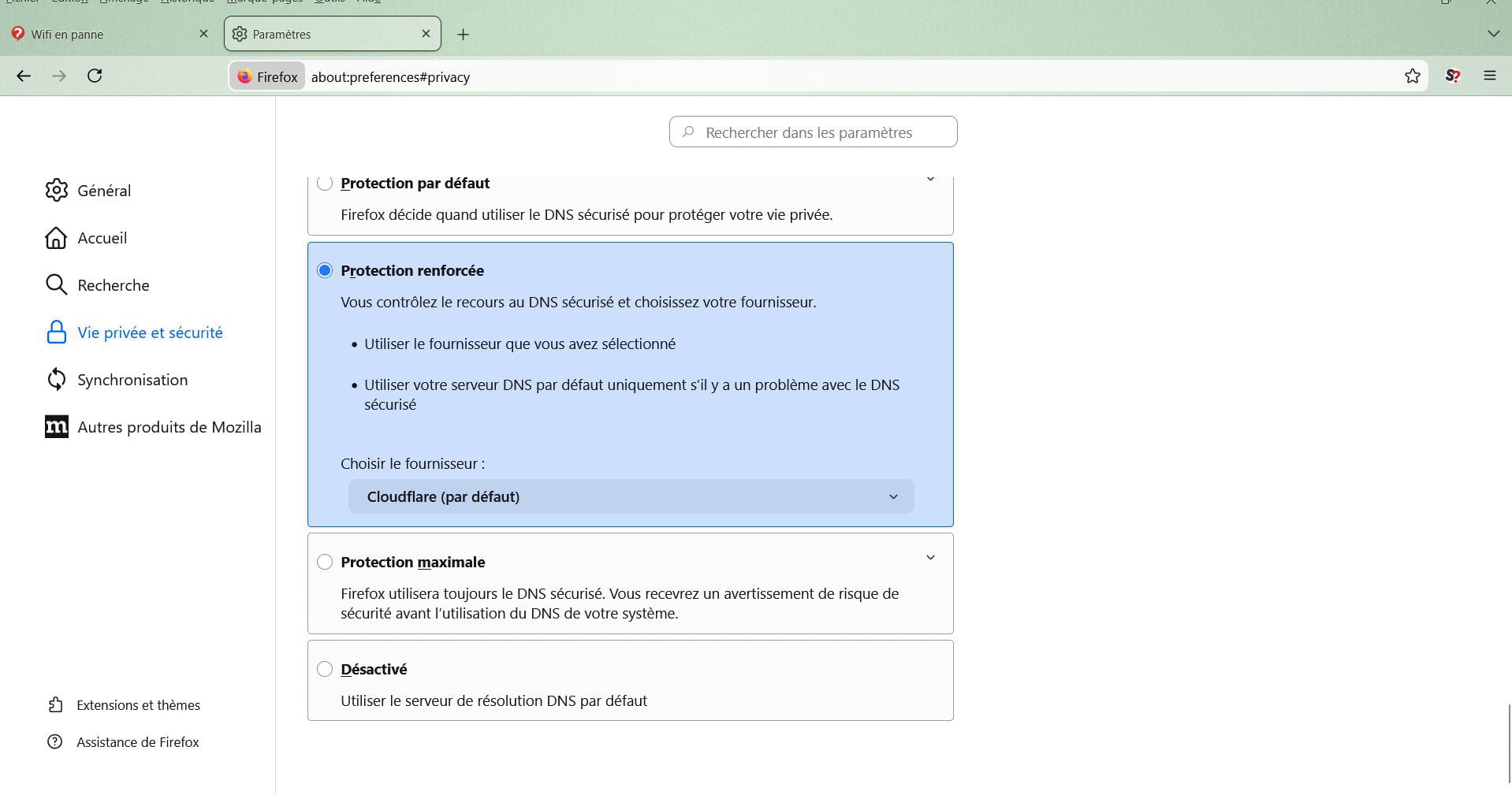 Tu précises le DNS de ton choix dans la capture d'écran précédente en IPV4 et aussi éventuellement en IPV6 et le cas échéant dans ton navigateur: