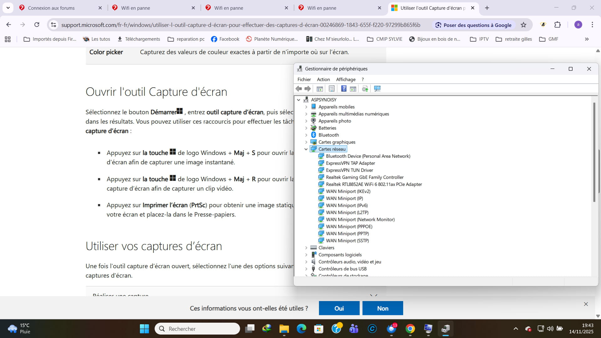 Fais clic droit sur connexion --> Wifi RTL8852AE wireless ......