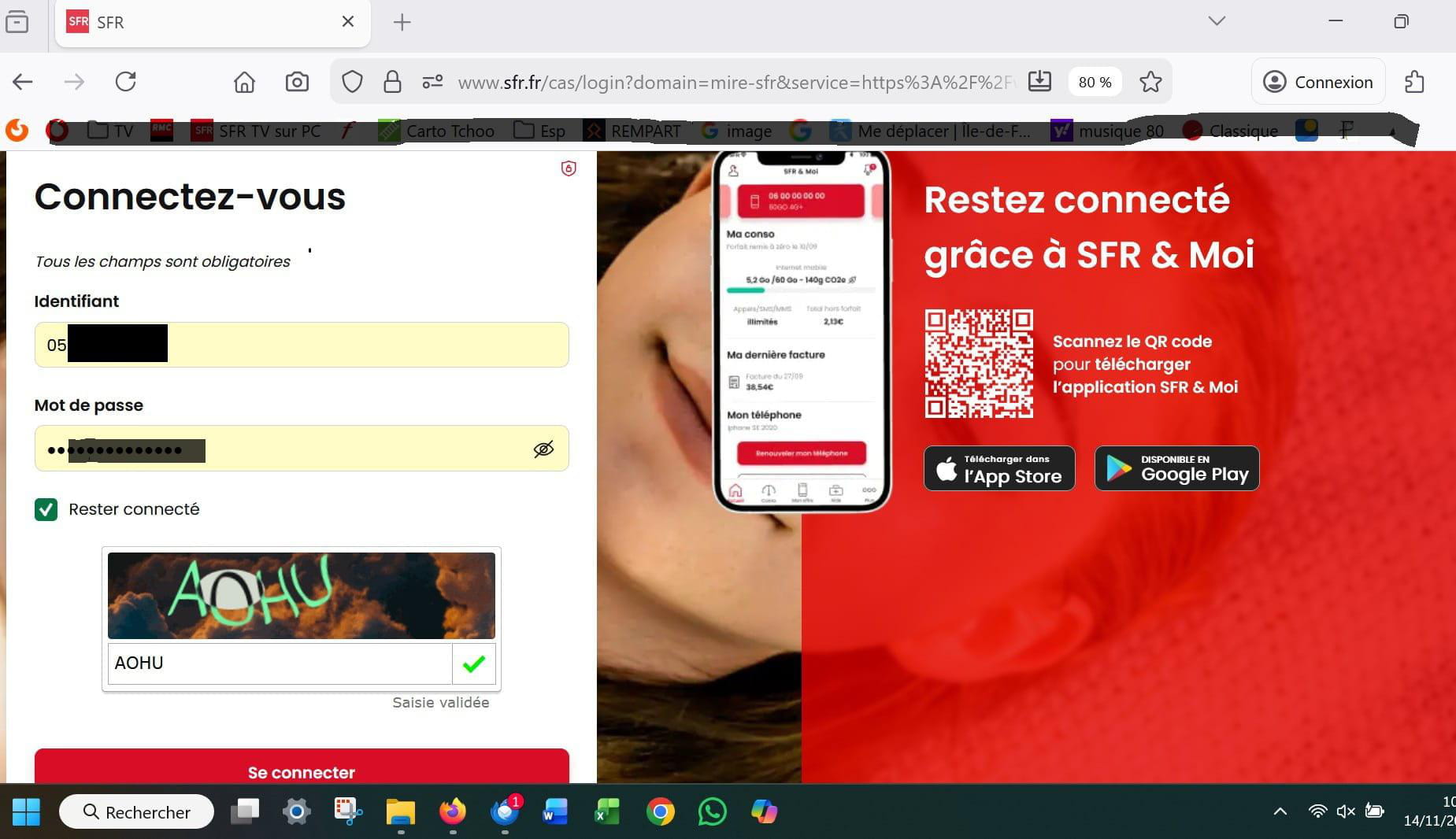 Je ne peux plus regarder la télévision sur mon PC portable avec Firefox. Je rentre correctement mon identifiant, mon mot de passe et le capcha qui est validé. Quand j'appuie sur "Connecter", je dois à nouveau saisir un capcha et ainsi de suite.