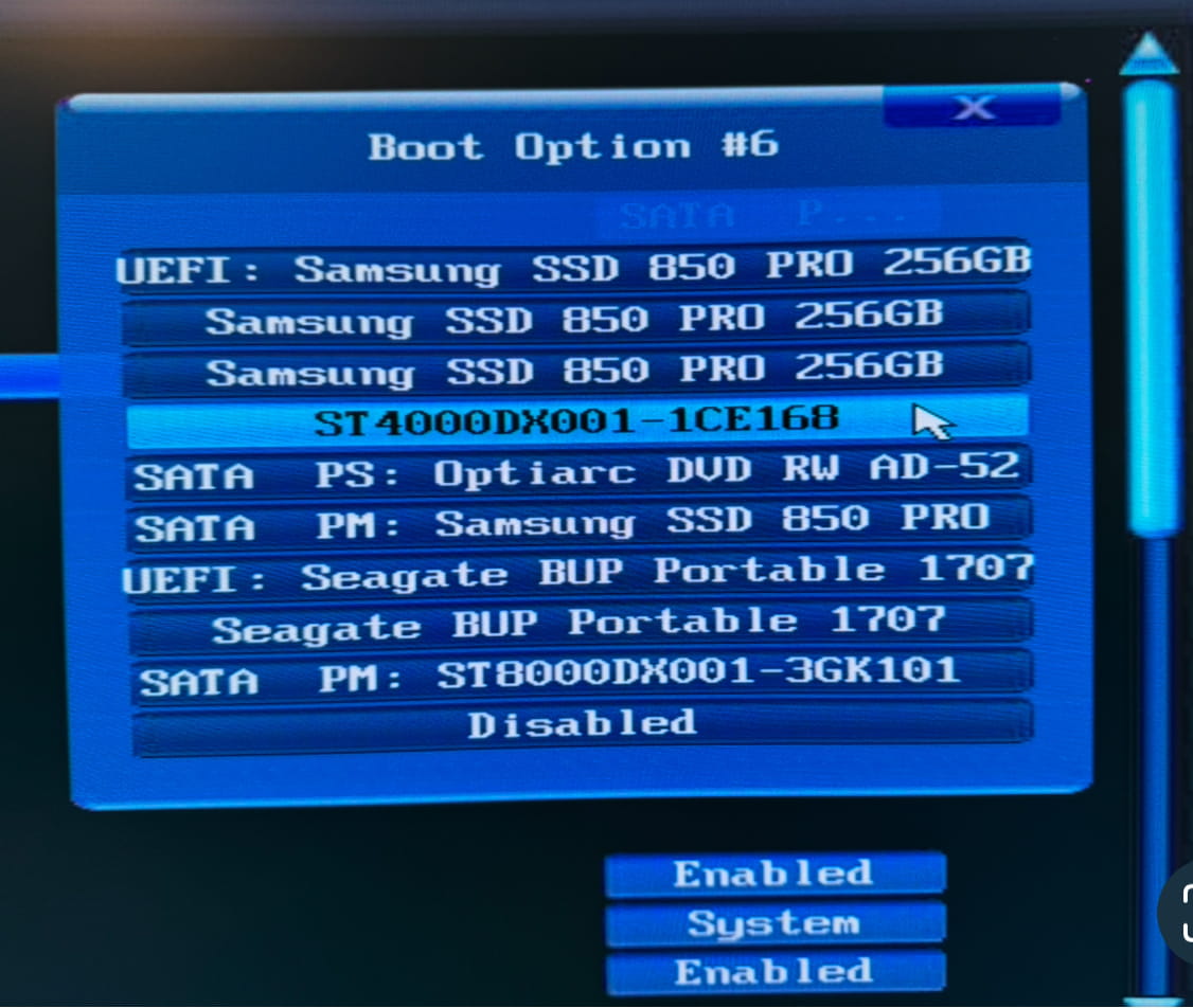 • disque est un Seagate (4TO) ST4000DX001-1CE168 (?:/) - branché en SATA sur l'emplacement SATA2 Nº3 de la carte mère