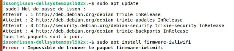 su - wget http://ftp.fr.debian.org/debian/pool/non-free-firmware/f/firmware-nonfree/firmware-iwlwifi_20250410-2_all.deb dpkg -i firmware-iwlwifi_20250410-2_all.deb