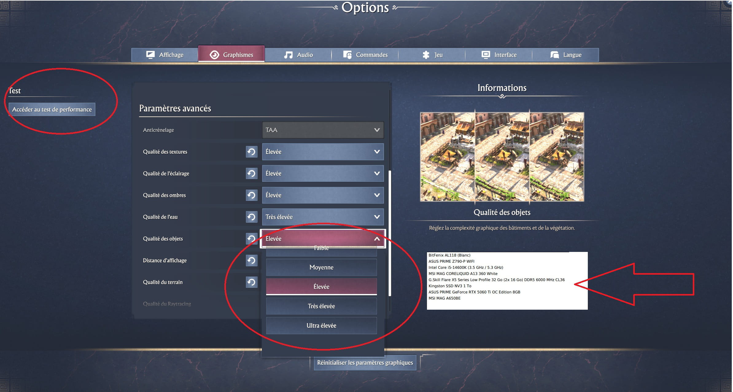 Bonus, si tu veux gratter des FPS avec la 4060TI 8Go, tu peux rester en Élevé mais avec les textures en Low ou Medium pour soulager la quantité de VRAM utilisée.
