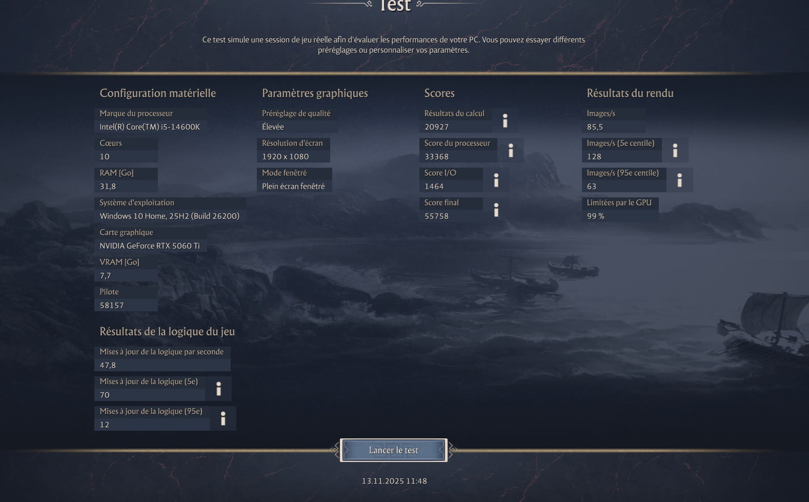 Pour la 4060TI, déjà fais une analyse EXTREME de userdiag qu'on écarte toutes les pistes. Ensuite, sans même parler d'exploiter les 500Hz de l'écran mais juste avoir des performances correctes (60 à 120Hz), c'est une 4080 (~+50%) qu'il faut plutôt viser, parlant des 4FPS relevés dans ton benchmark en Ultra. Passer à 60FPS même en High demande un VRAI upgrade