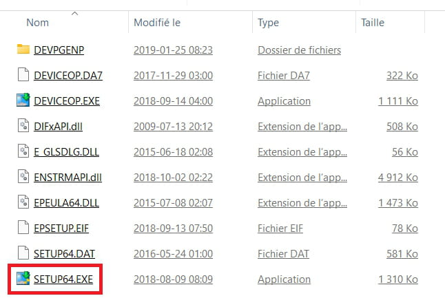 Relance l'exécutable du pilote --> SETUP64.EXE