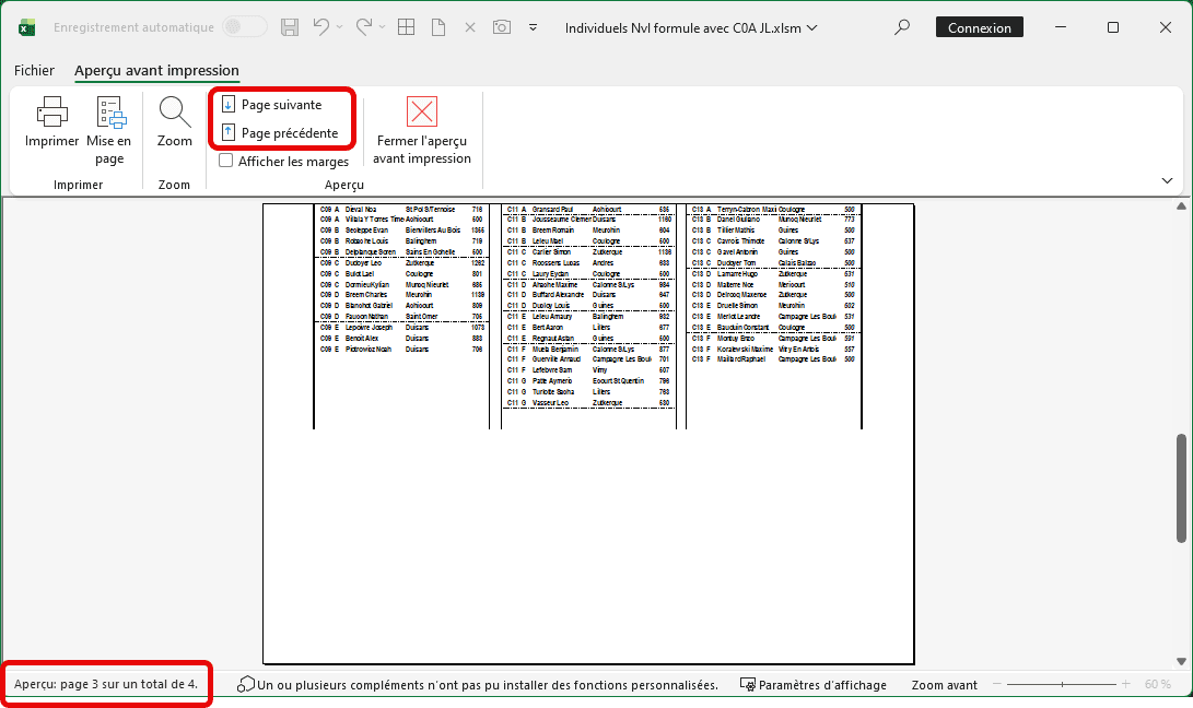 J'ai repris ma mise en forme pour tout mettre en paysage. L'aperçu fonctionne, mais en appuyant sur page suivante, je reste sur la 1ère page. En revanche, toutes les pages sont imprimées.