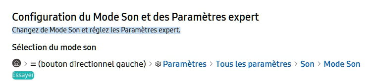 "Paramètres" - "Son" - "Paramètres Experts" - "Retour Son"