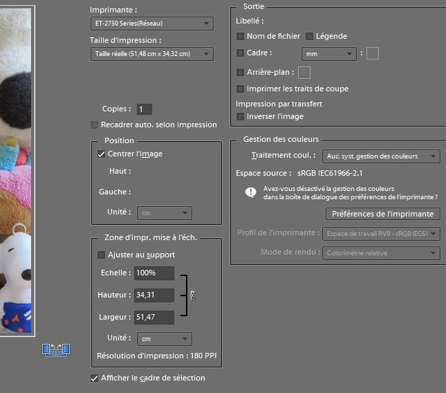 La taille de l'image en cm est identique à celle de la taille de l'impression, mais quand j'imprime, la taille de l'image sur le papier est plus petite.