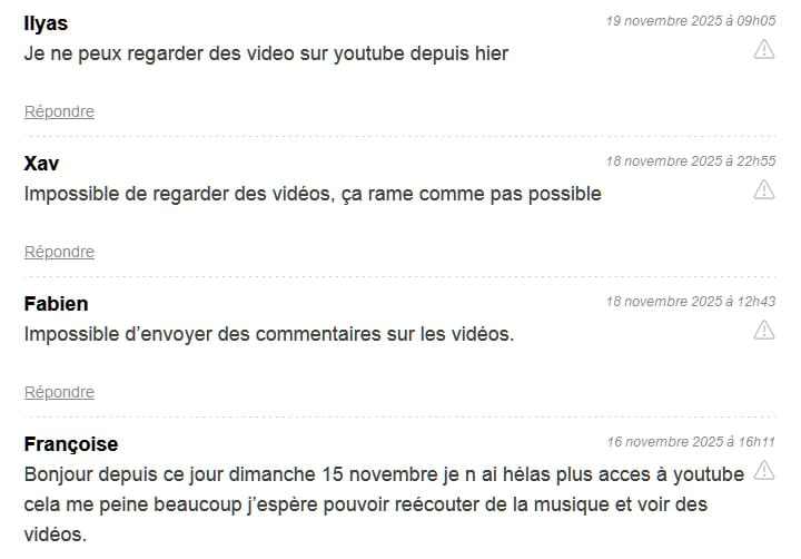 Il semblerait que ce soit lié à un problème au niveau des serveurs de Youtube.