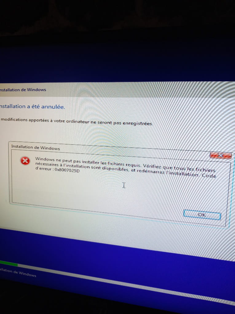 Dans le contexte qui nous intéresse, la clé va détecter une installation Windows existante au démarrage; faire comme si elle n'existait pas, on doit avoir tout en bas un choix formater, on obéit, on formate tout s'il y a plusieurs partitions, puis on sélectionne le disque devenu vierge pour installer.