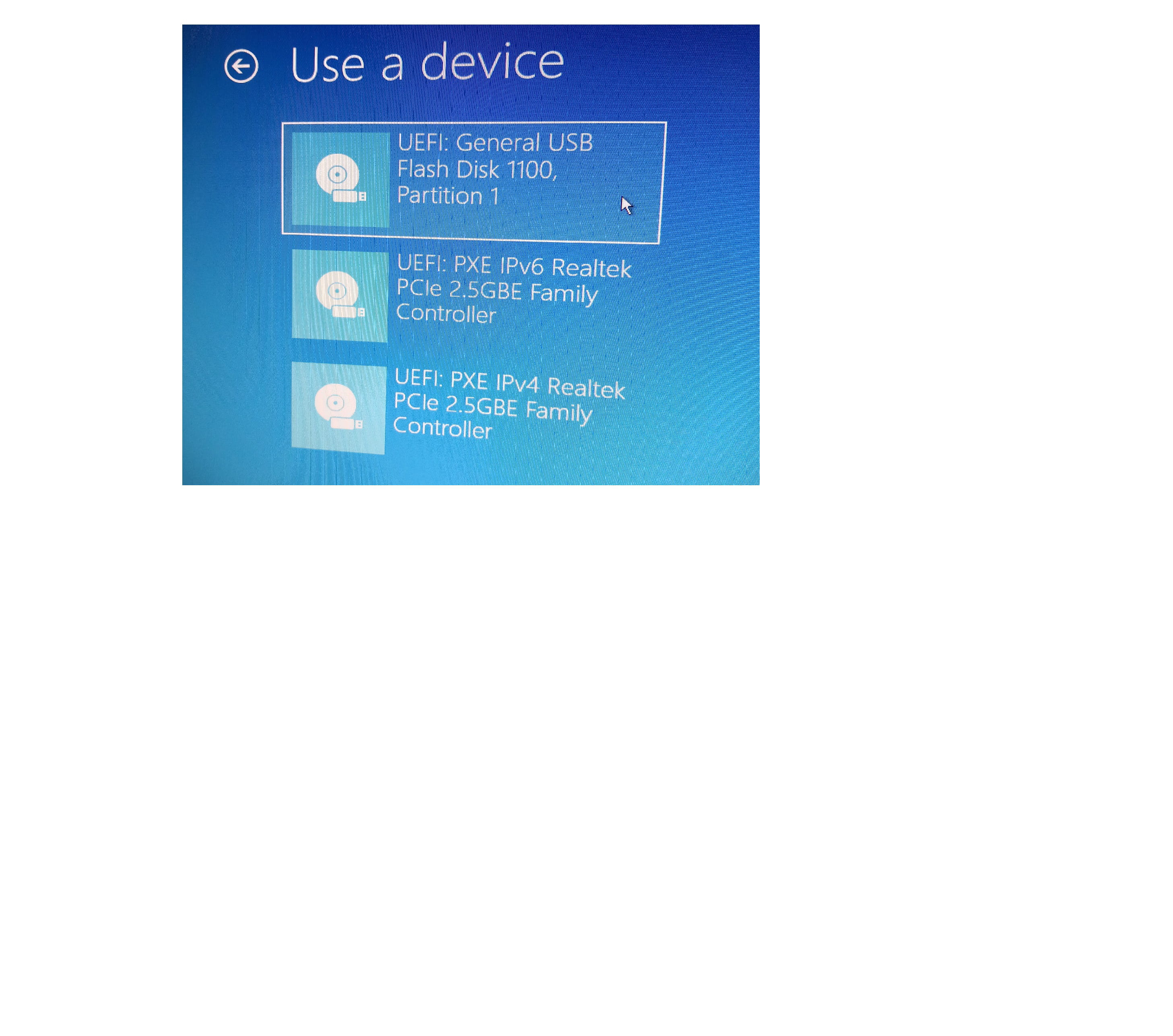 L'écran ne propose curieusement pas de démarrer sur le disque (peut-être parce qu'il n'est pas GPT et donc pas UEFI).