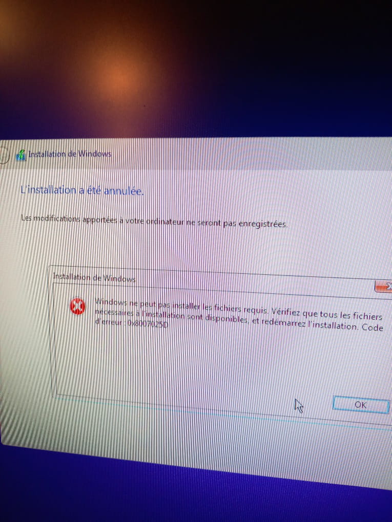 Bonjour, allez je suis confiant, donc du coup je réinstalle windows à partir d'un fichier iso sur clé usb, donc souci il me dit ça dans la 1ere image !?